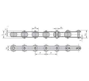 - 雙節(jié)距結(jié)構(gòu):雙節(jié)距輸送鏈的鏈節(jié)之間有兩個不同的間距,即大節(jié)距和小節(jié)距。這種結(jié)構(gòu)設(shè)計可以提供更靈活的物料傳輸和定位,適用于需要不同間距的應(yīng)用場景。