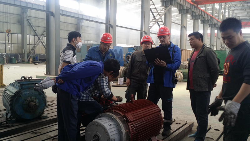 工。濟(jì)源特鋼和德國(guó)西門子公司技術(shù)人員到我公司進(jìn)行驗(yàn)收。經(jīng)驗(yàn)收維修后的電機(jī)各項(xiàng)技術(shù)參數(shù)均
